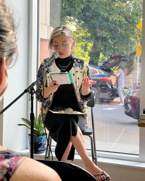 Emdash AKA Emily Lu Gao (高璐璐) is a writer, artist, and daughter of Chinese immigrants. She writes to heal, grow, and decolonize. A 2025 LAMBDA Fellow, her work can be found in Poetry Northwest, Alocasia, Underblong, Tinderbox Poetry, Sine Theta, Poetry.Online, The Bellingham Review, Kweli Journal, and others. They’ve received funding from The Chinese American Museum of Los Angeles, Jersey City Arts Council, Sundress Publications, Sunday Jump, Bread Loaf Environmental Writers Conference and more. She has a BA in Asian American Studies from Pitzer College and a MFA in Poetry from Rutgers University-Newark. She has also learned equally as much if not more from community organizing and Southern California open mics. Until April 2026, her poem installation “Letter B” is on view at The Chinese American Museum of Los Angeles as part of the (Be)Spoken Poetry exhibit. When not writing, they are likely being unserious. (She/They)